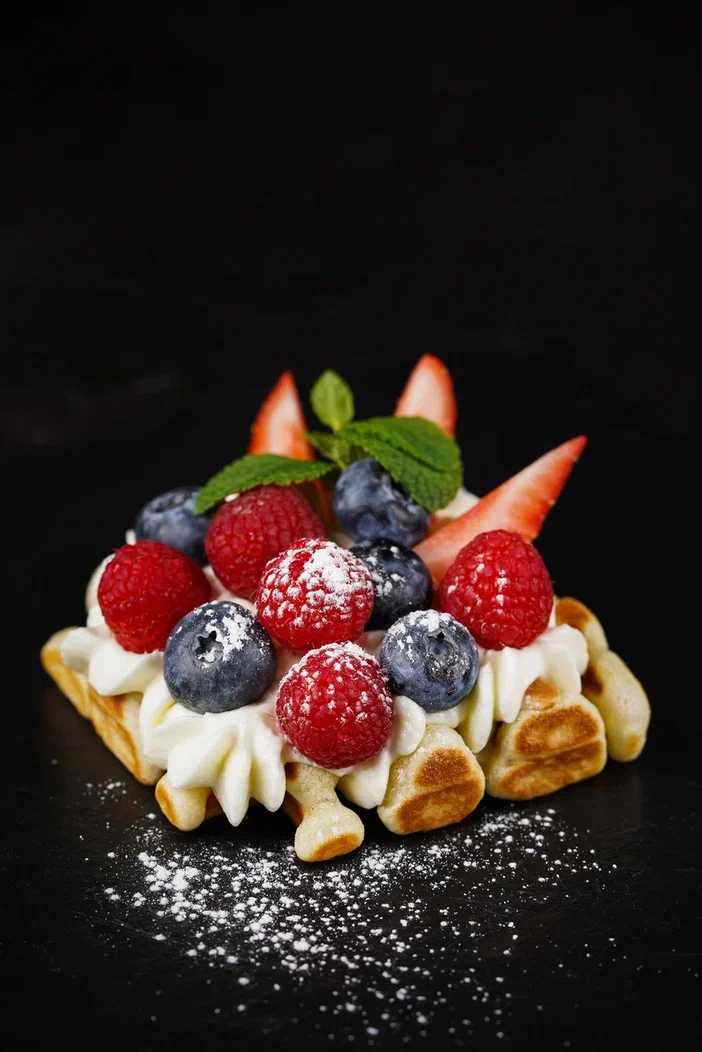 Вафли с крем чизом и сезонными ягодами