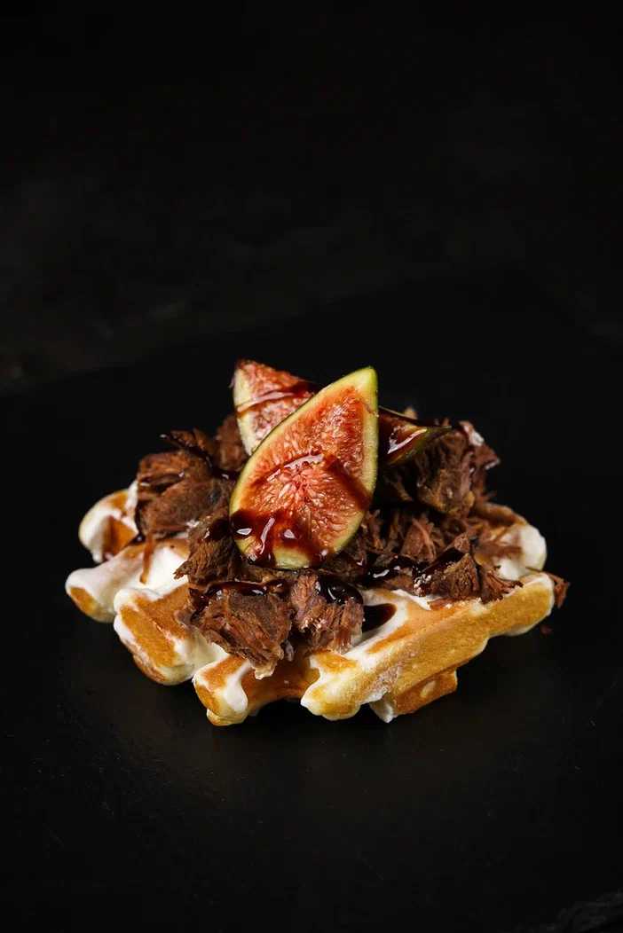 Вафли с томленой говядиной и инжиром