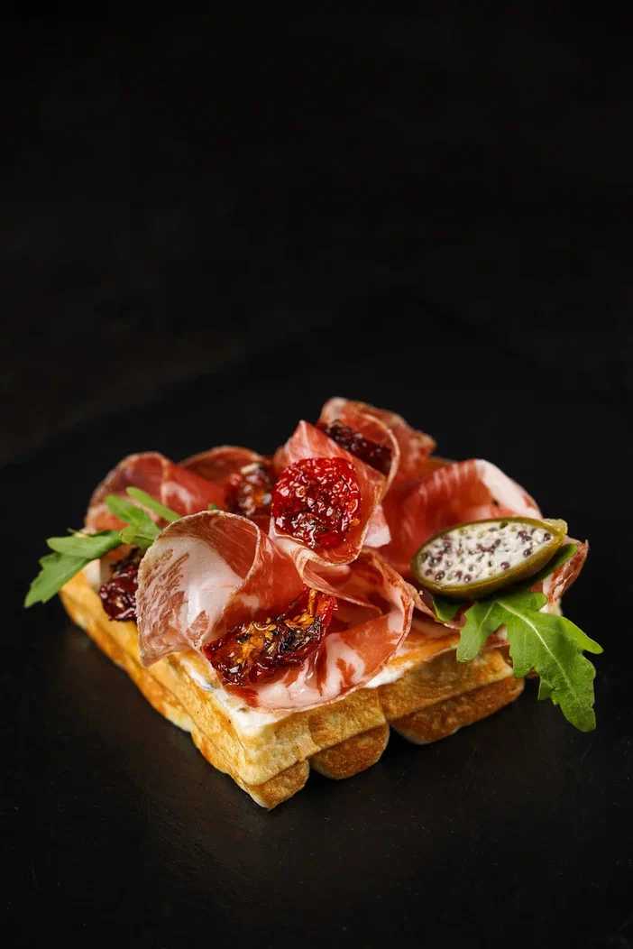 Вафли с пармой и вялеными томатами