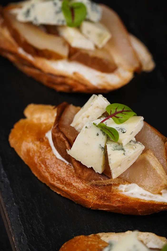 Брускетта с грушей и голубым сыром