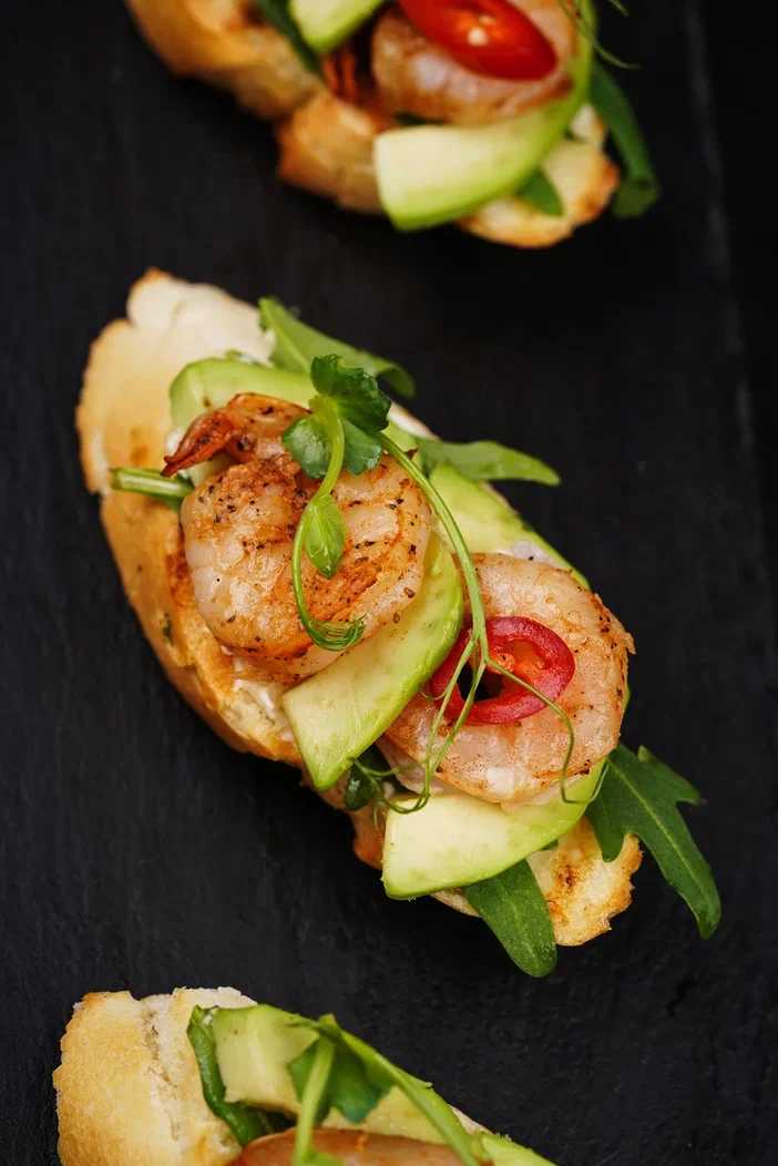 Брускетта с креветкой и авокадо