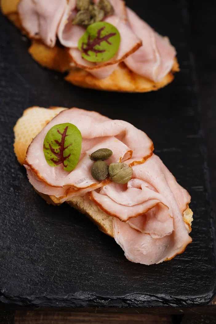 Брускетта с каперсами и ветчиной