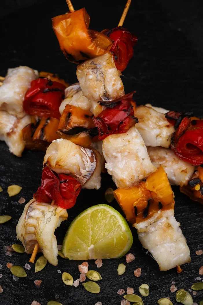 Шашлычок судак с овощами