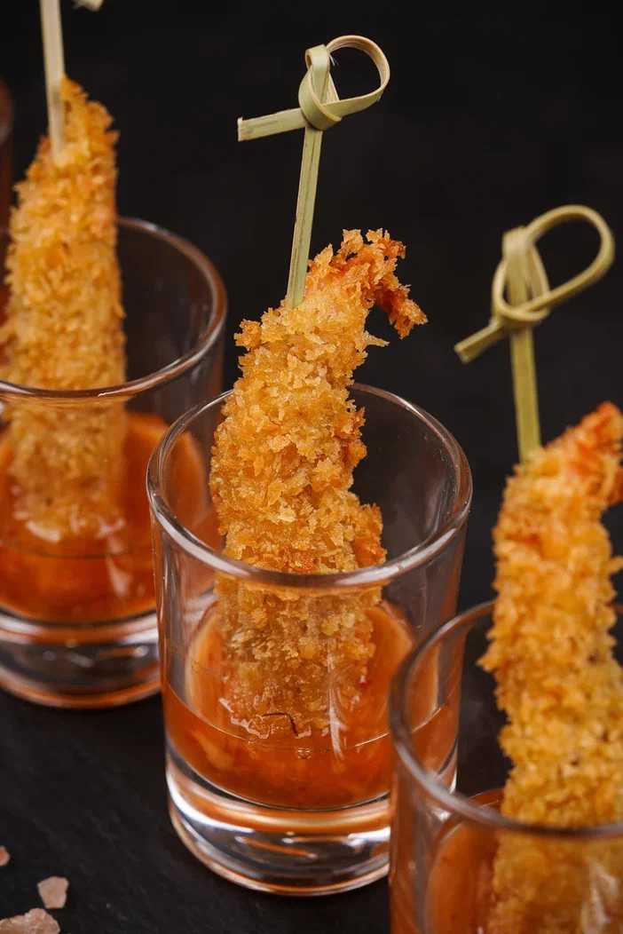 Обжаренная в панировке креветка с пикантно-сладким соусом чили