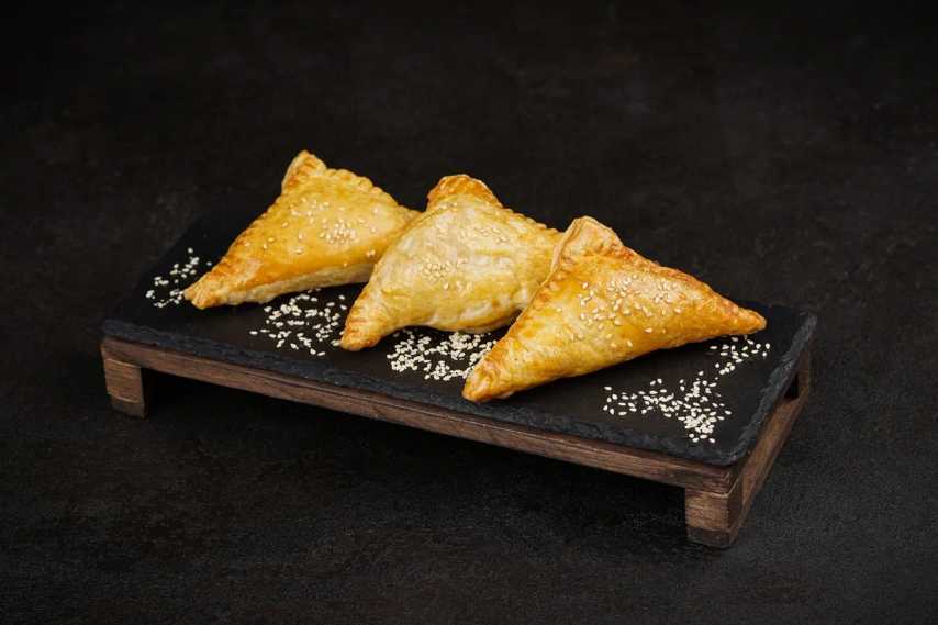 Тесто слоеное, начинка брынза-шпинат, кунжут
