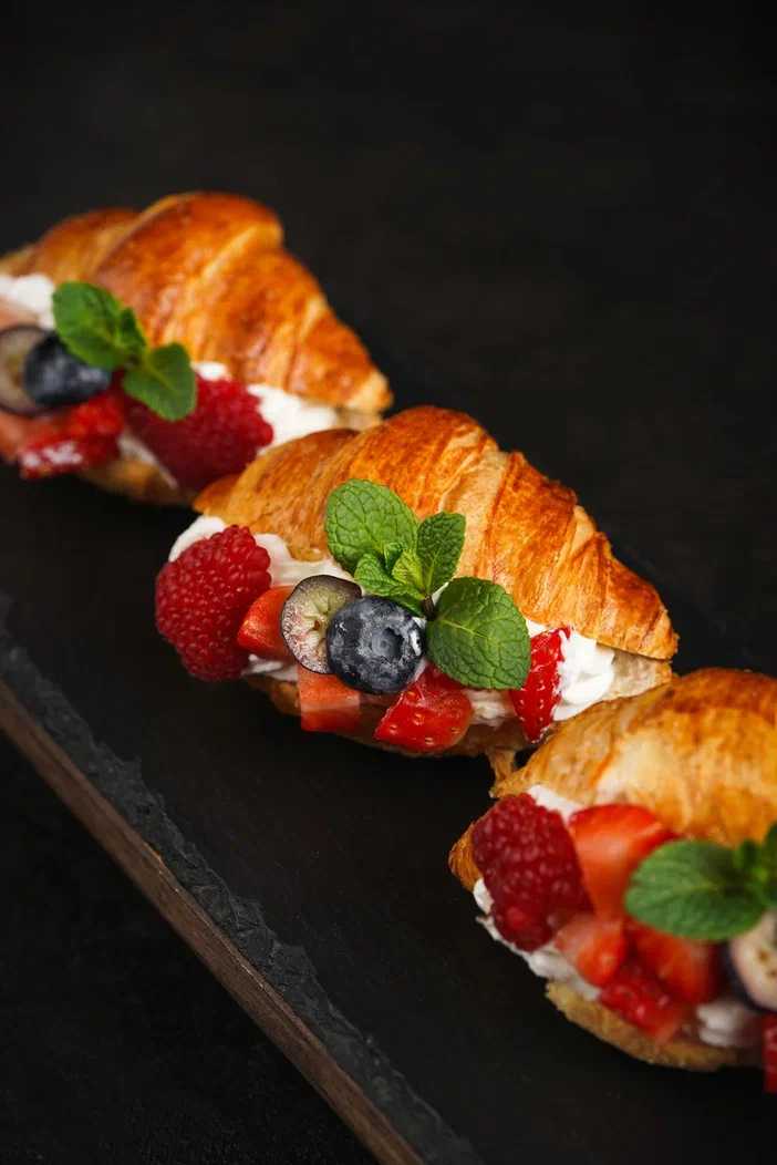 Мини круассан с заварным кремом и ягодами
